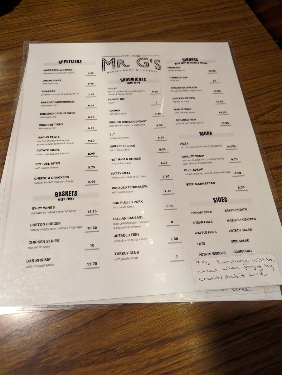 Welcome to Mr G's Restaurant & Lounge, a culinary gem nestled at 708 Lincolnway W, Osceola, IN. This bustling establishment offers a diverse menu that delights both casual diners and food enthusiasts alike.